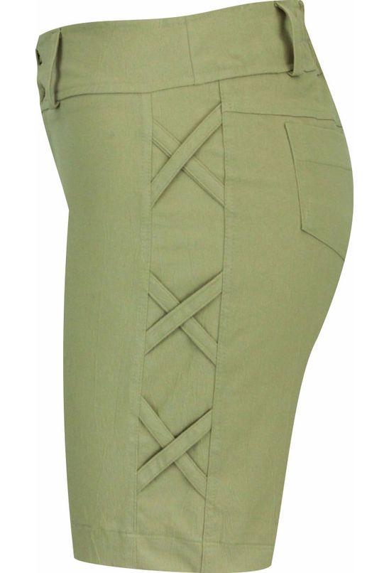 Shorts cintura médio-alta. Shorts em sarja “adamascada”.