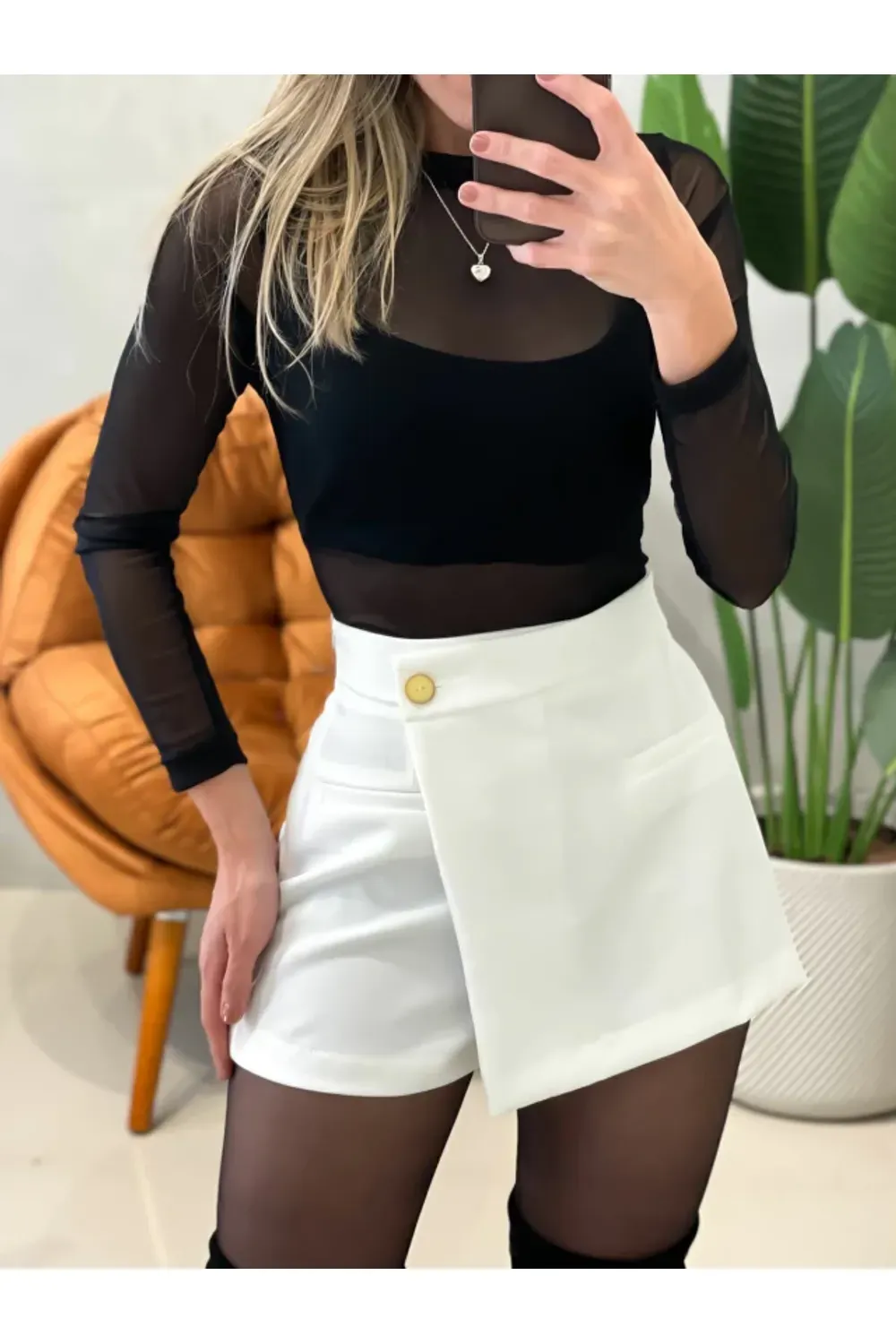 Shorts Saia em Alfaiataria com Bolsos Falsos Paola Ref. 1538