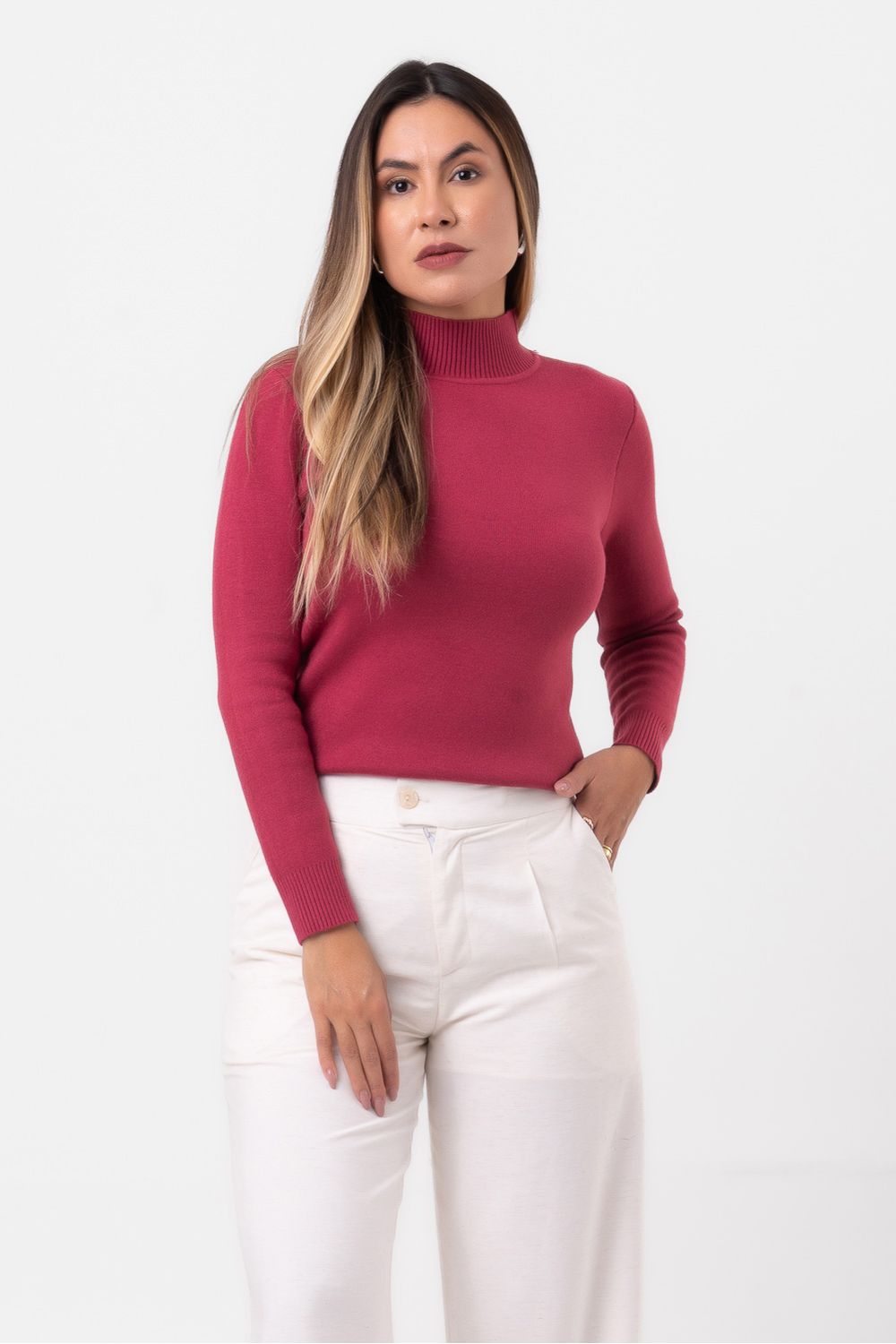 Suéter gola alta ameixa