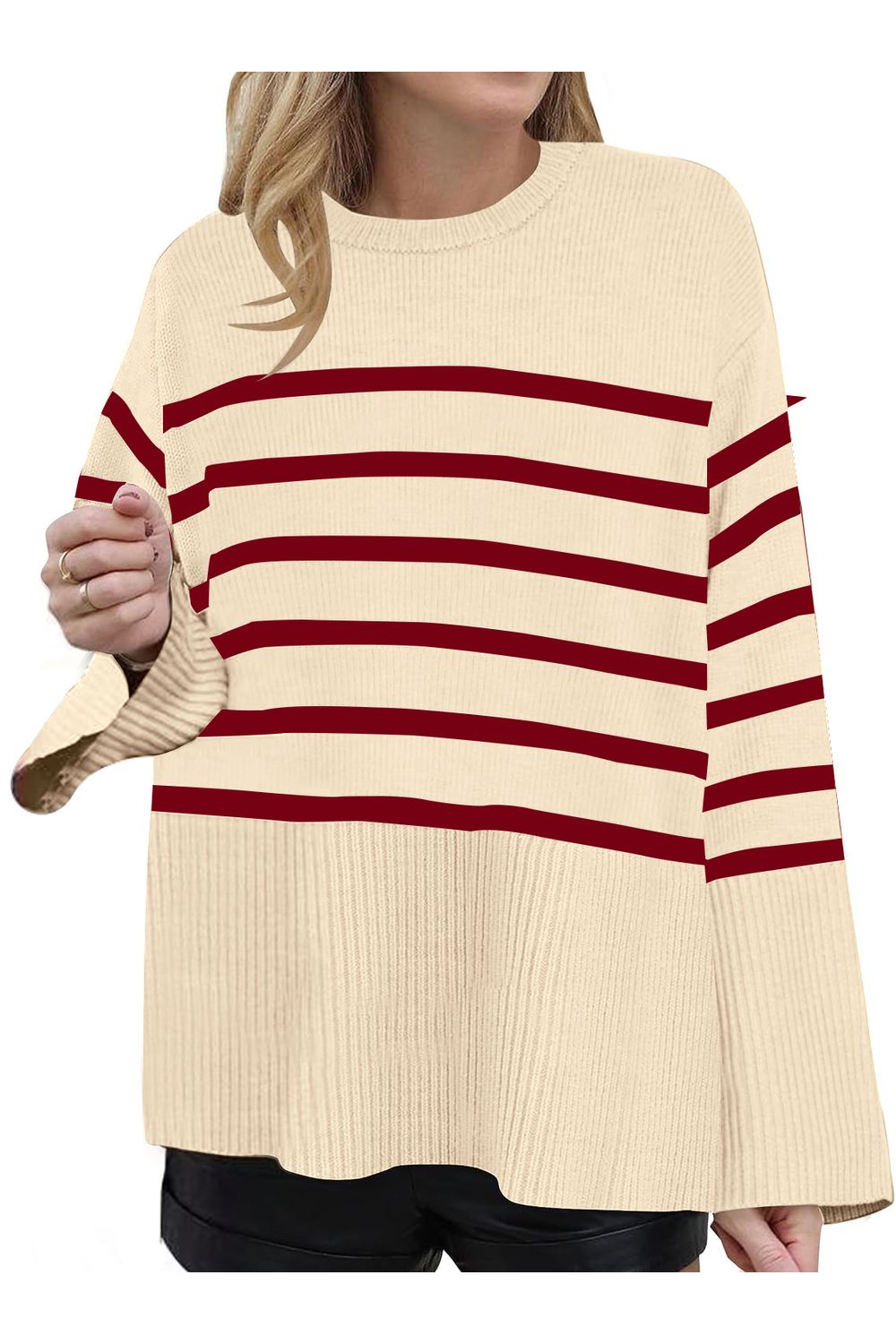 Suéter listrado retrô bege
