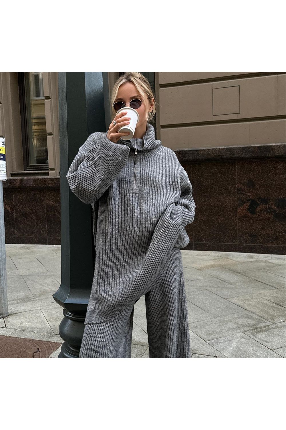 Suéter ouversized com gola cinza