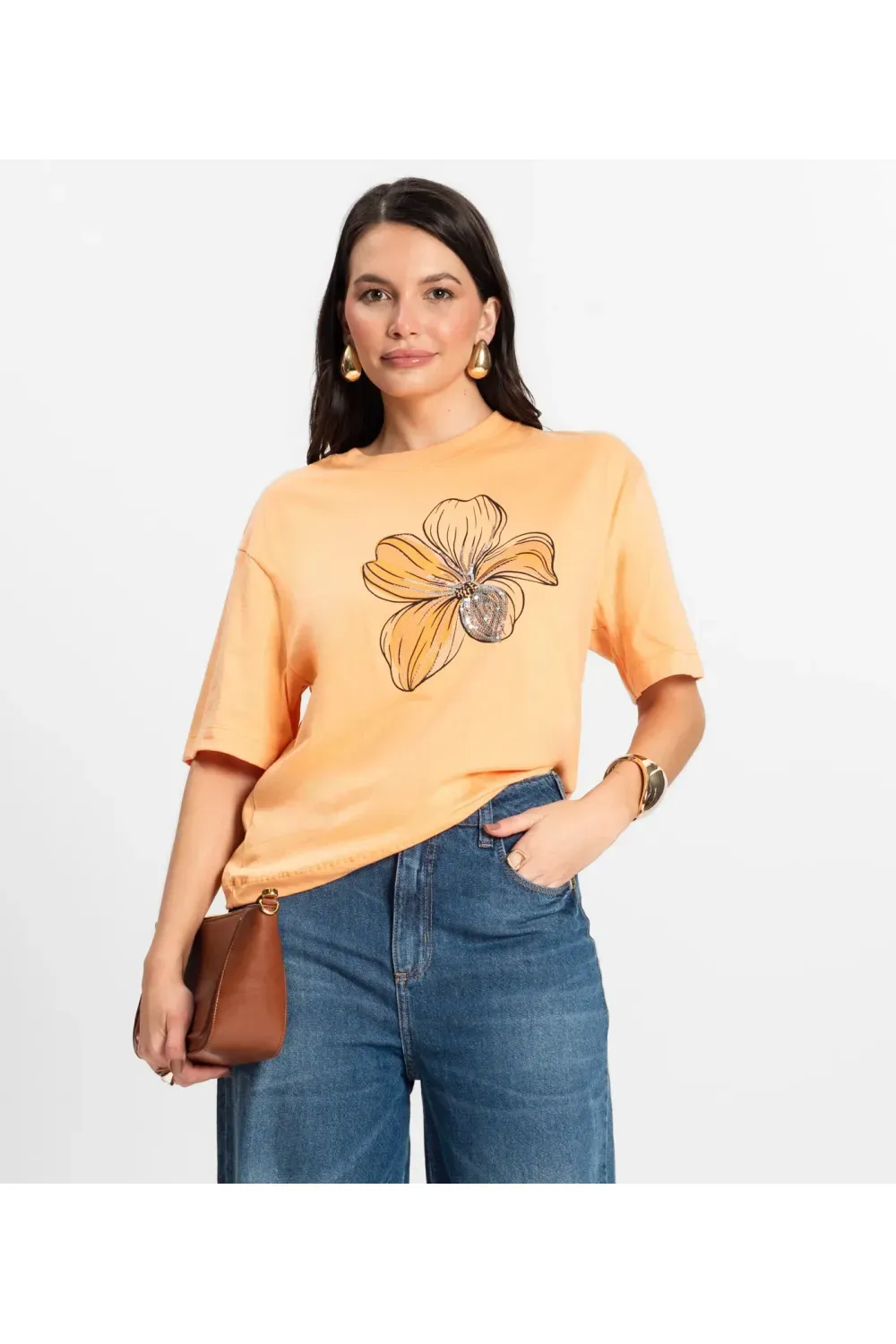T-Shirt Box Feminina Rovitex confeccionada em meia malha, super confortável e com caimento moderno. Possui gola com acabamento em ribana, mangas e barra com acabamento reforçado. O grande destaque da peça é a estampa localizada em formato de flor, com bordado de lantejoulas que dá um charme especial. Ideal para compor looks estilosos e despojados no dia a dia.-