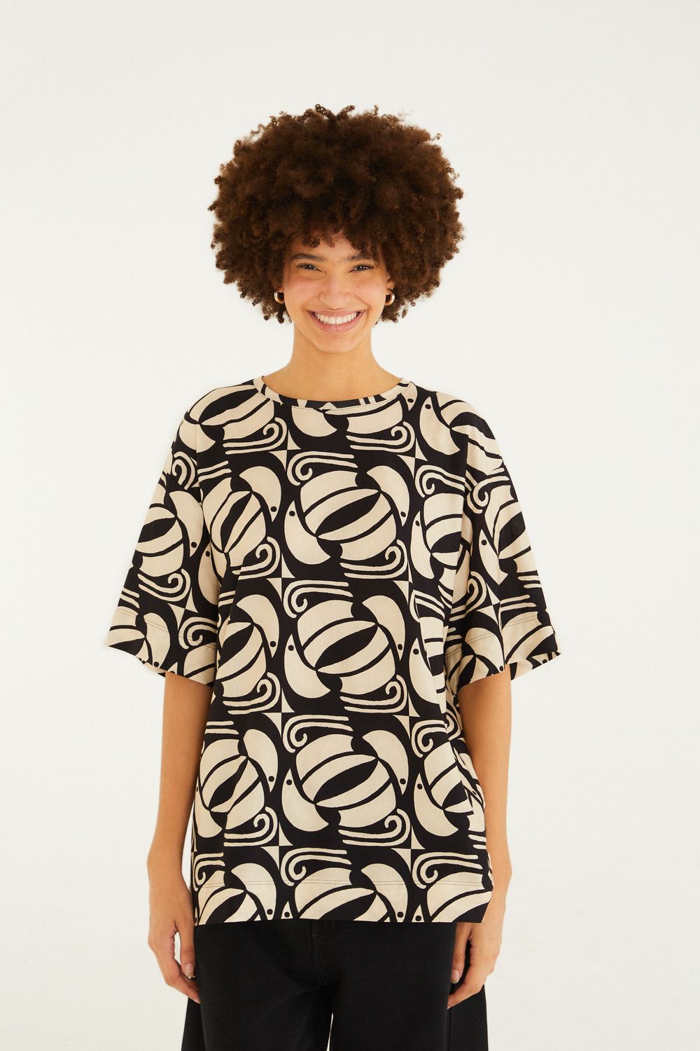 t-shirt básica tuca xadrez traz uma modelagem solta e confortável, perfeita para quem busca estilo no dia a dia. com decote redondo e mangas amplas que proporcionam leveza, esta peça é a escolha certa para um look casual e cheio de personalidade. uma combinação única de modernidade e versatilidade. FARM Rio, coleção Carioca - inverno 26.-