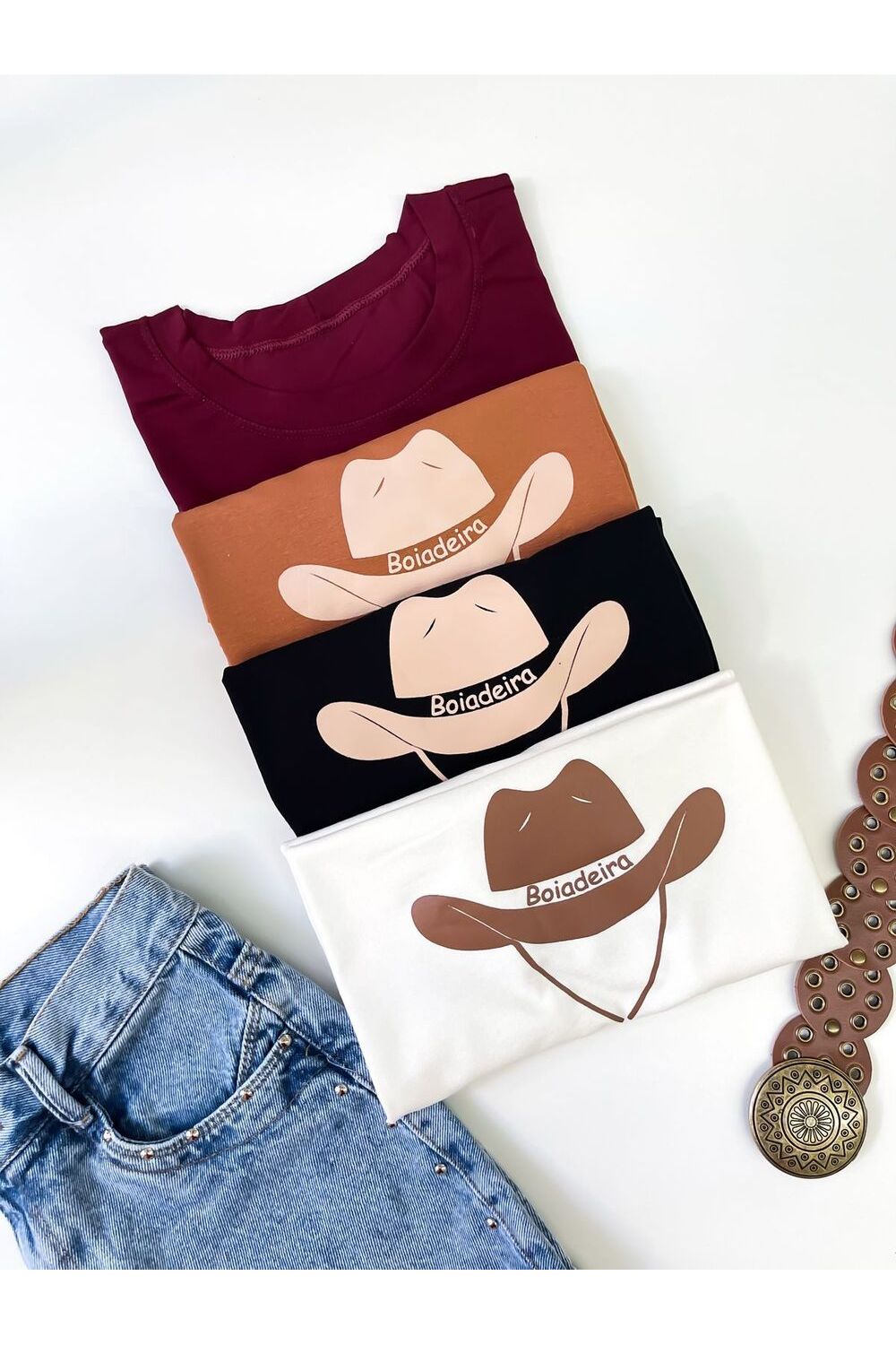 T-Shirt Feminina Estampada Boiadeira Ref. 808 - Caramelo - Único