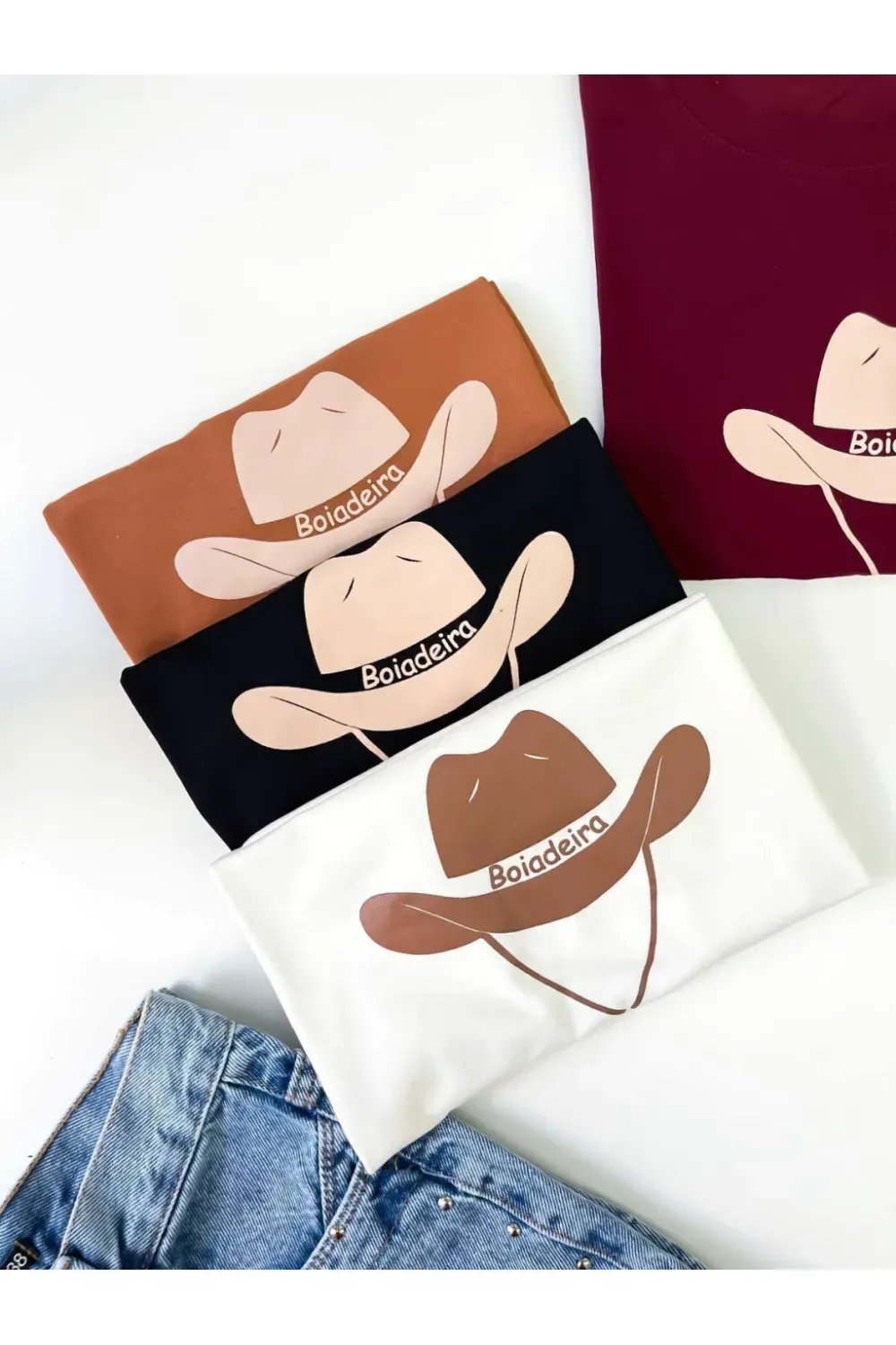 T-Shirt Feminina Estampada Boiadeira Ref. 808 - Marsala - Único