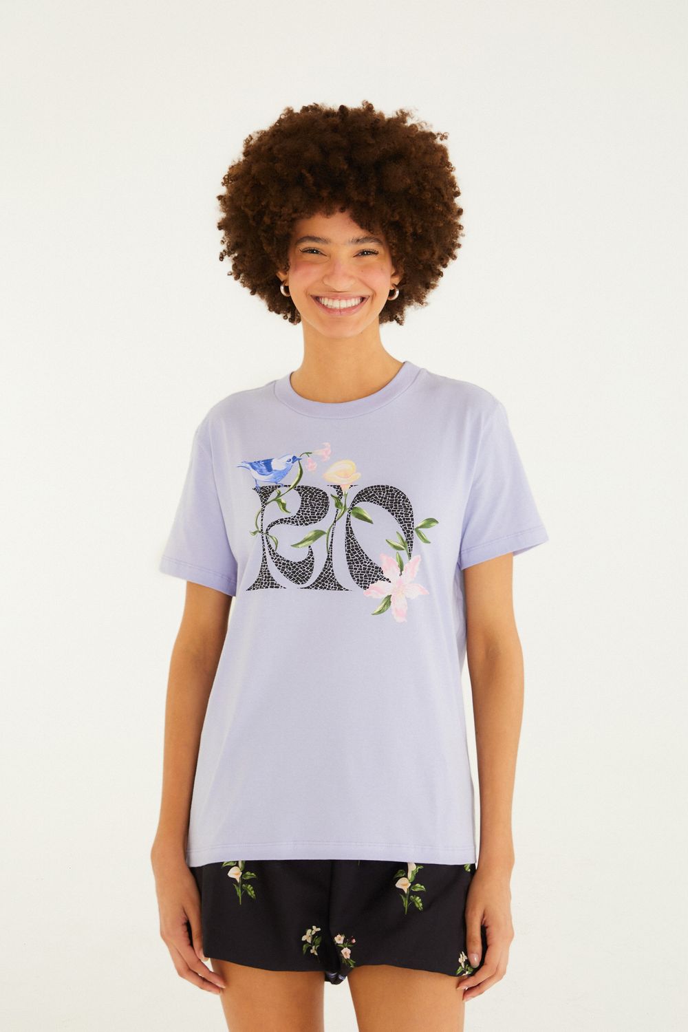 t-shirt fit rio calçadão flores azul sai. possui decote redondo e mangas curtas, garantindo conforto e estilo. a modelagem básica torna a peça uma escolha casual perfeita para o dia a dia. o toque artístico da estampa agrega originalidade ao look. versátil, combina tanto com jeans quanto com saias leves. FARM Rio, coleção Carioca - inverno 26.-