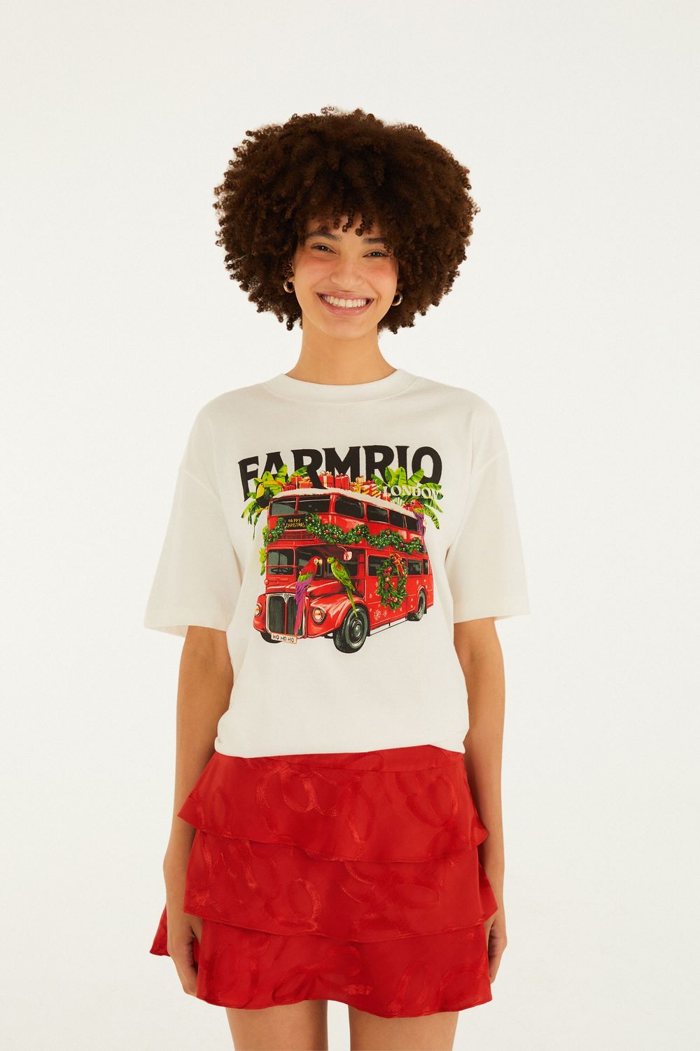 t-shirt media ônibus londres. modelagem reta, trazendo conforto e estilo em qualquer ocasião. o decote redondo e as mangas curtas conferem um ar casual, ideal para passeios urbanos ou encontros descontraídos. um toque exclusivo da FARM para o seu guarda-roupa. FARM RIO original - alto verão 26.-