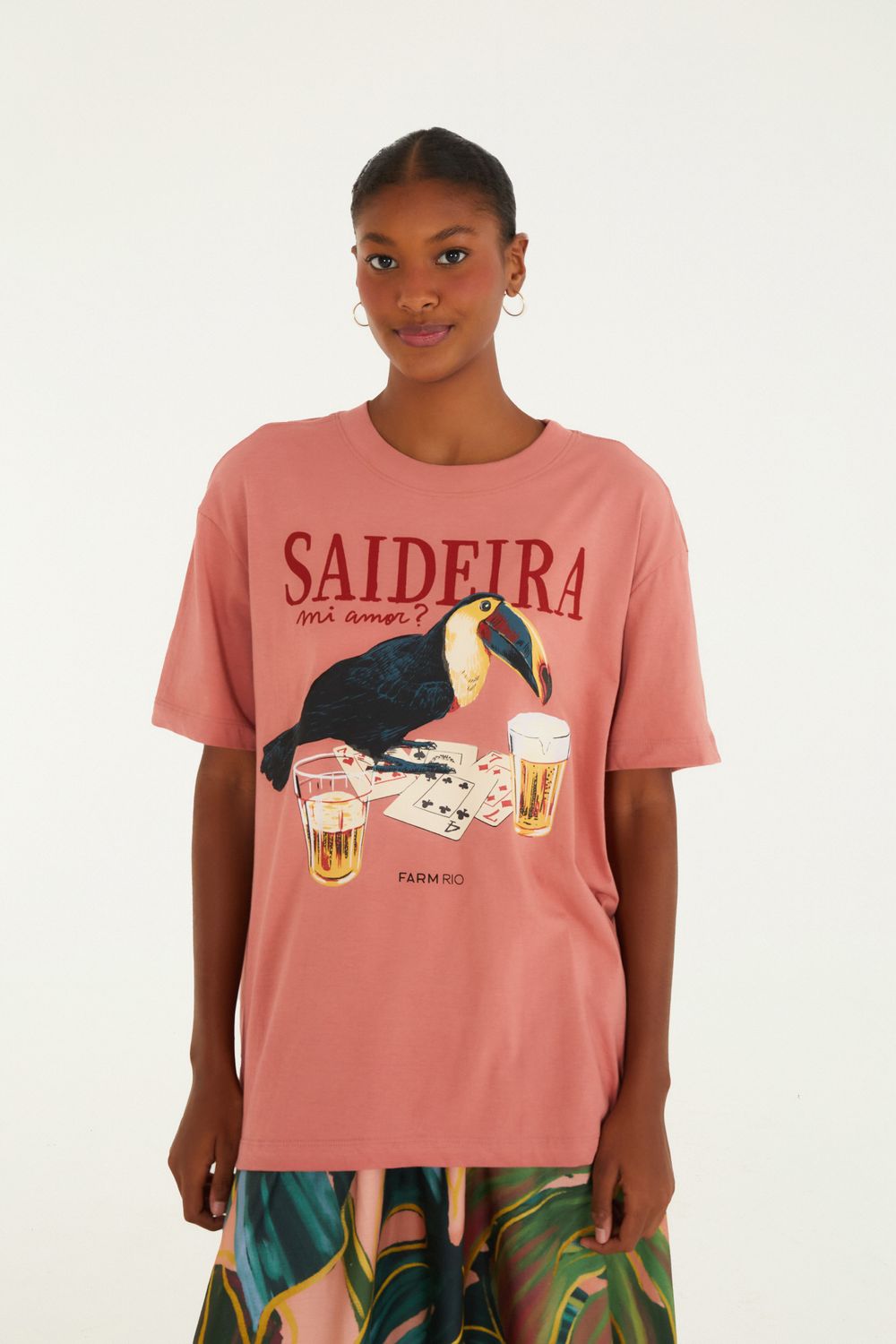 t-shirt média saideira rosa do. design casual e versátil, com modelagem solta que oferece conforto e leveza. decote redondo e mangas curtas complementam o visual despojado e original. perfeita para encontros descontraídos, garantindo estilo sem esforço em qualquer ocasião. FARM RIO original - verão 26.-