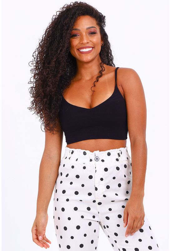 Top farm modelo top cropped, decote em v, cor preta, sem manga, tecido elastano e viscose. *as peças podem variar a estampa de acordo com o corte.