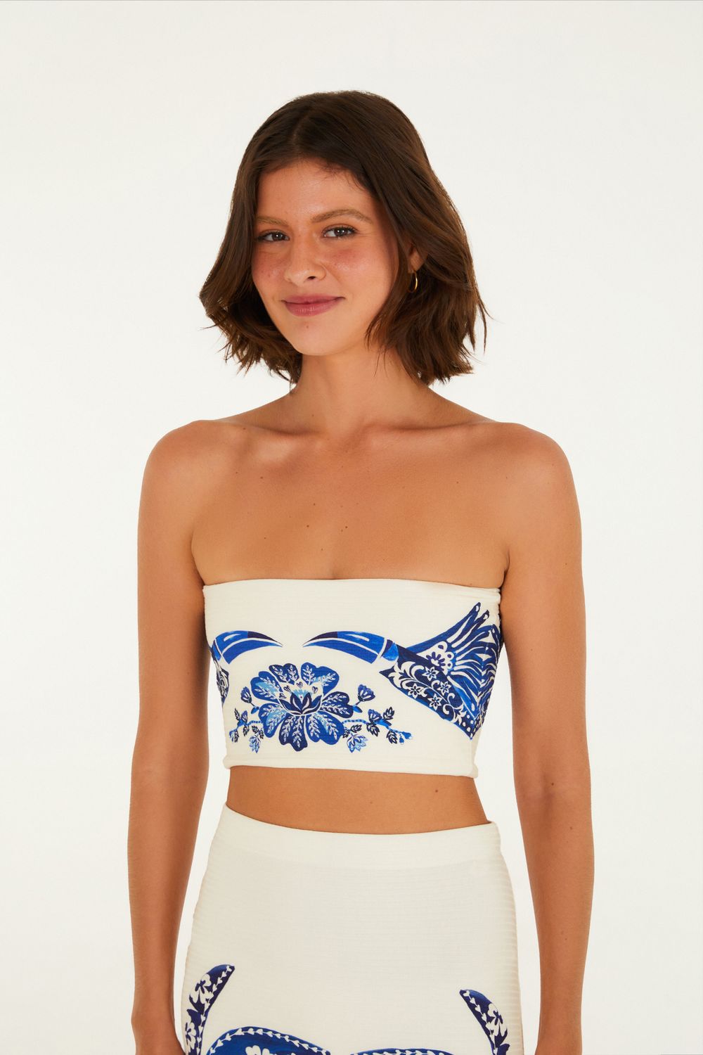 top reto double estampado coqueiro tropical. com corte reto e moderno, sem alças, valoriza o frescor e a originalidade em qualquer look. perfeito para dias de sol, sua estampa traz o toque tropical característico da FARM. combina com saias e shorts para um visual casual. FARM RIO original - verão 26.-