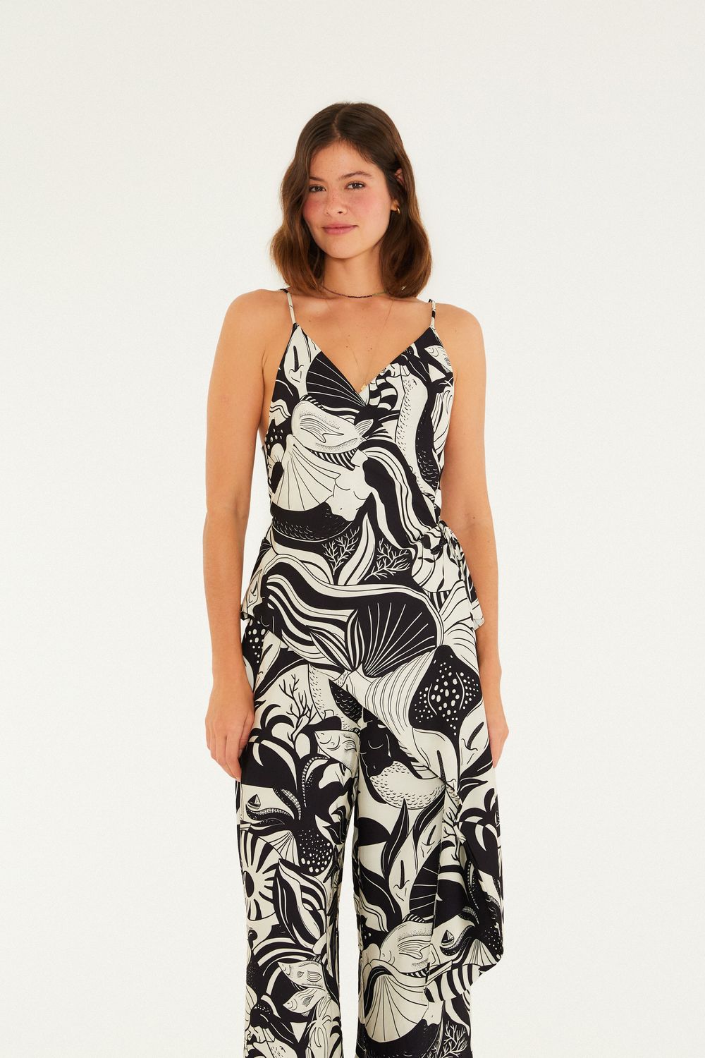túnica estampada festa de mar. essa peça traz o frescor irresistível de uma tarde à beira-mar com seu corte fluido e alças finas que esbanjam leveza. o decote em v e a modelagem solta proporcionam conforto e estilo para diversas ocasiões, do almoço casual a um happy hour descontraído. FARM RIO original - verão 26.-