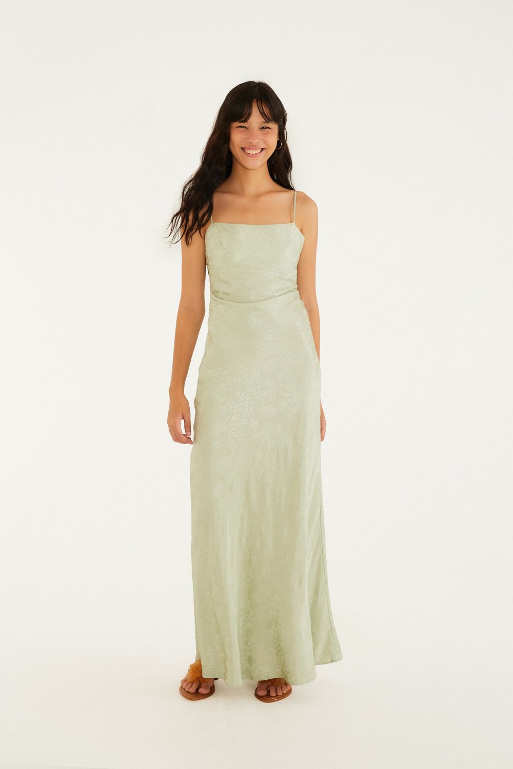 vestido alcinhas jacquard lili. com um corte fluido e alças finas, este modelo é uma celebração da leveza tropical. o tecido em jacquard adiciona um toque especial, enquanto o caimento esvoaçante é perfeito para jantares à beira-mar ou eventos ao ar livre. destaque seu estilo único em qualquer ocasião. FARM RIO original - verão 26.-