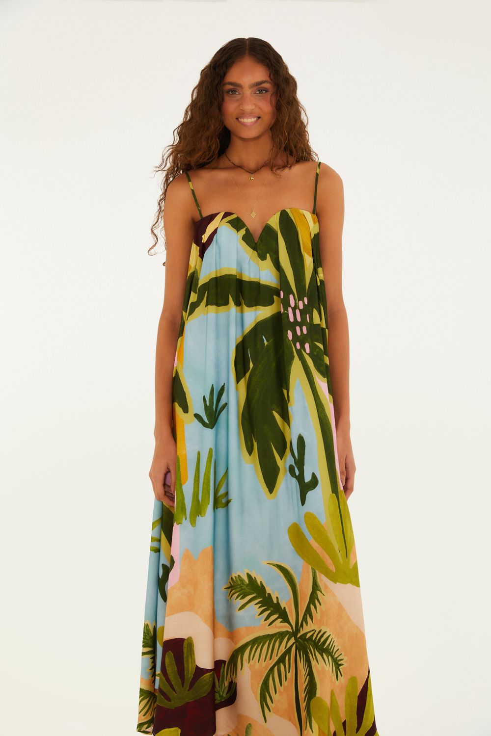 vestido aro estampado burburinho. um modelo leve e fluido, com alças finas e decote delicado que proporciona frescor e movimento. confeccionado em tecido confortável, é ideal para passeios ao ar livre e eventos casuais. a estampa exclusiva traz um toque de originalidade. aproveite a versatilidade dessa peça única em seu guarda-roupa. FARM RIO original - alto verão 26.-