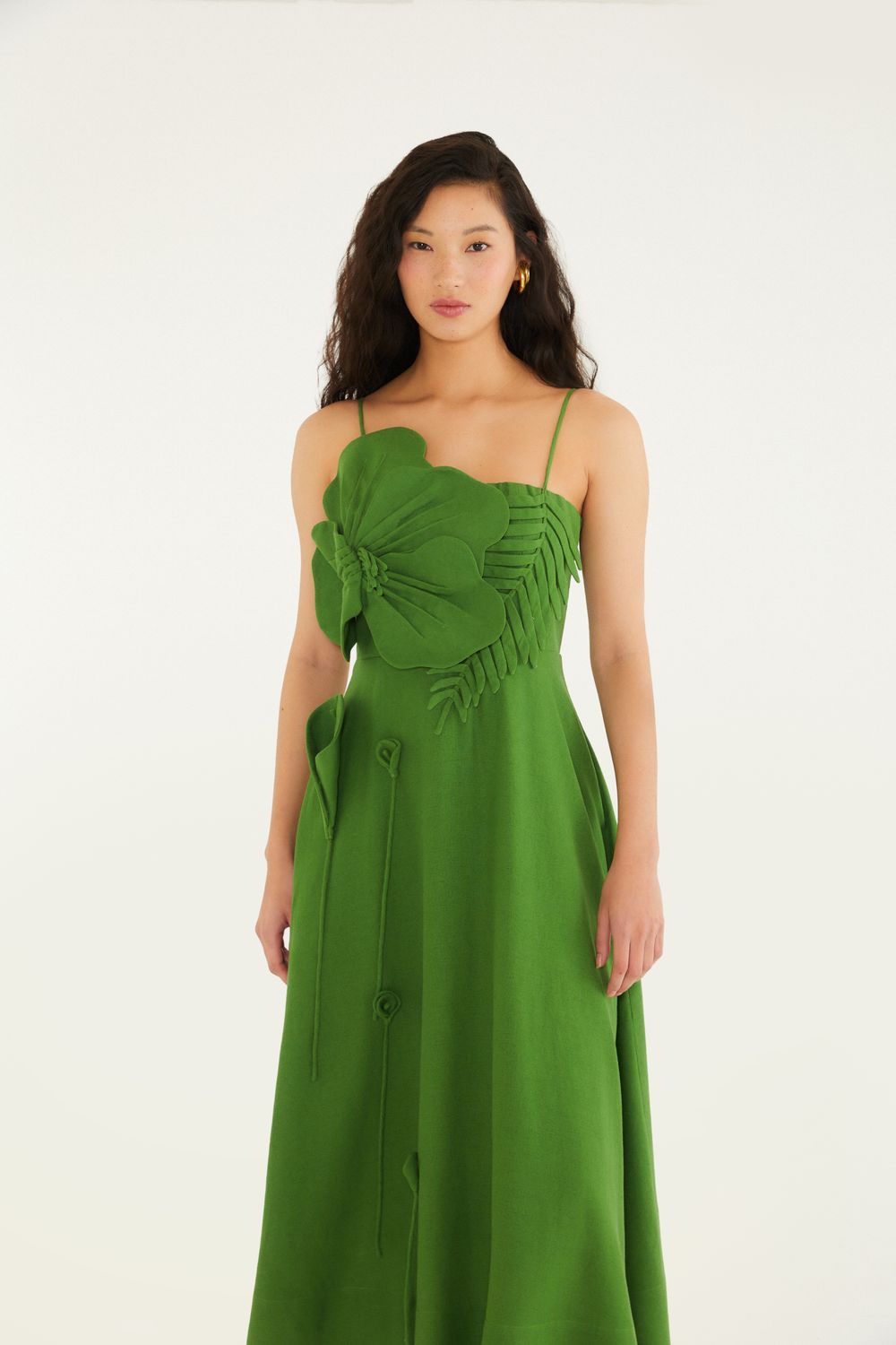vestido artesanal flor gabrielle. com alças finas e modelagem fluida, este vestido traz detalhes únicos em flor aplicados, criando um visual artesanal e contemporâneo. o caimento leve é ideal para momentos casuais ou eventos especiais, proporcionando conforto e originalidade. uma peça que celebra a essência da inovação. FARM RIO original - alto verão 26.-