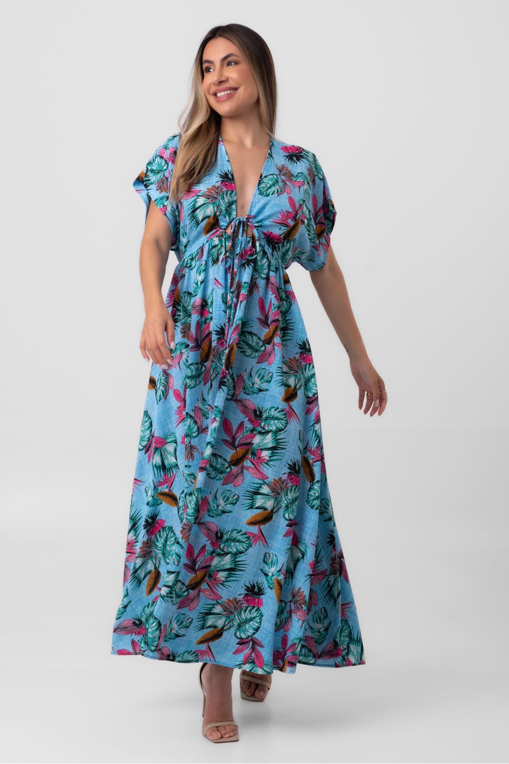 Vestido crepe longo equador azul pequiá