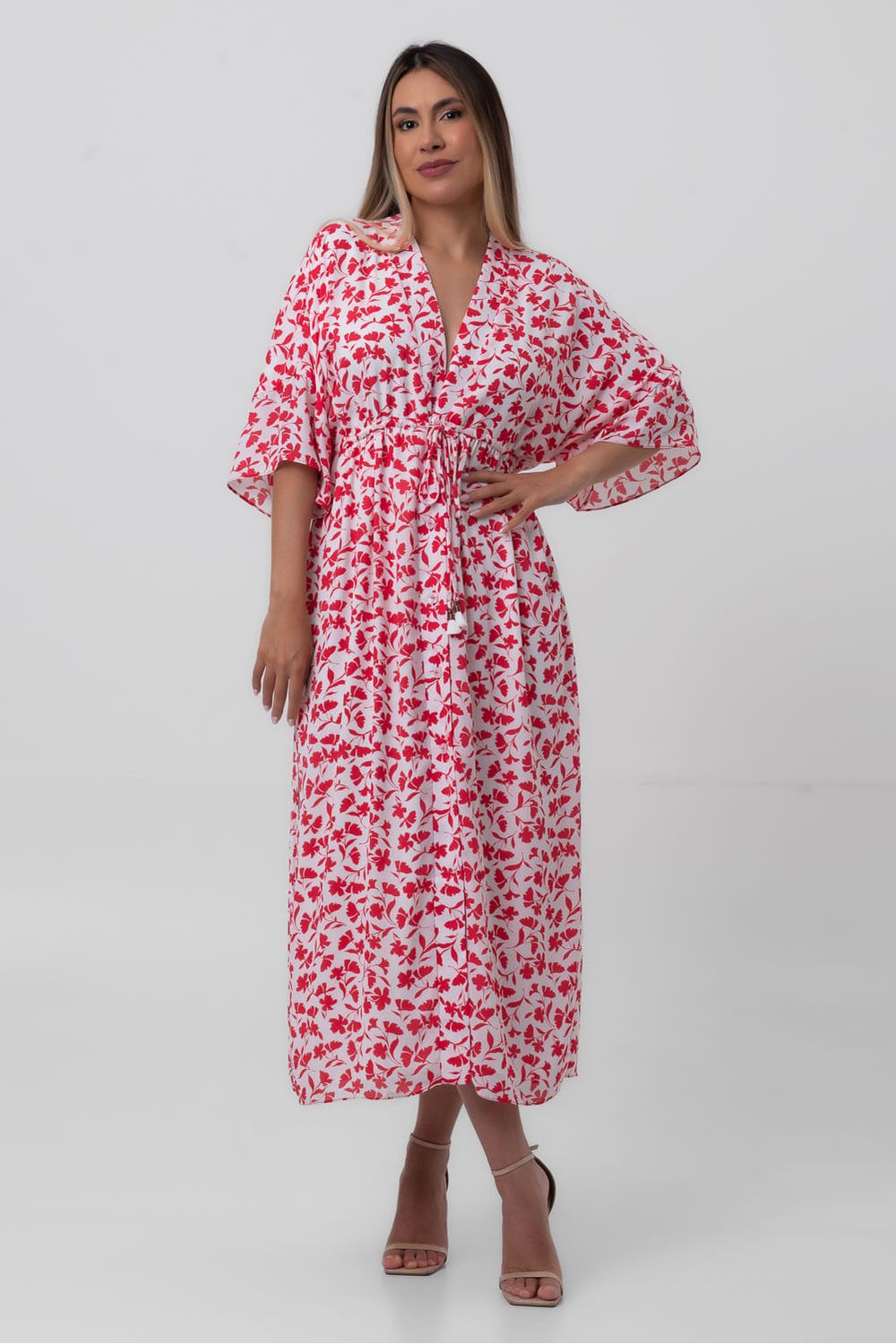 Vestido crepe midi floreio pequiá-