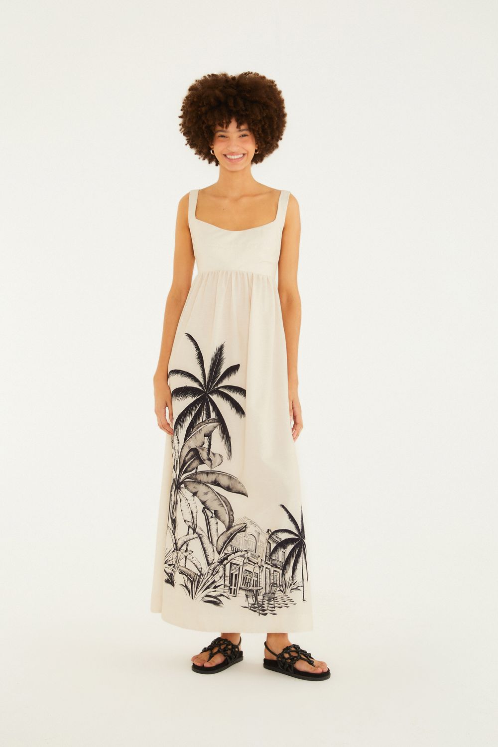 vestido cropped vila teresa. desenhado com alças largas e decote em coração, este vestido é perfeito para um toque casual no seu dia a dia. seu corte solto proporciona conforto, enquanto detalhes de amarração nas costas adicionam charme ao look. aposte em eventos ao ar livre ou reuniões casuais. FARM Rio, coleção Carioca - inverno 26.-