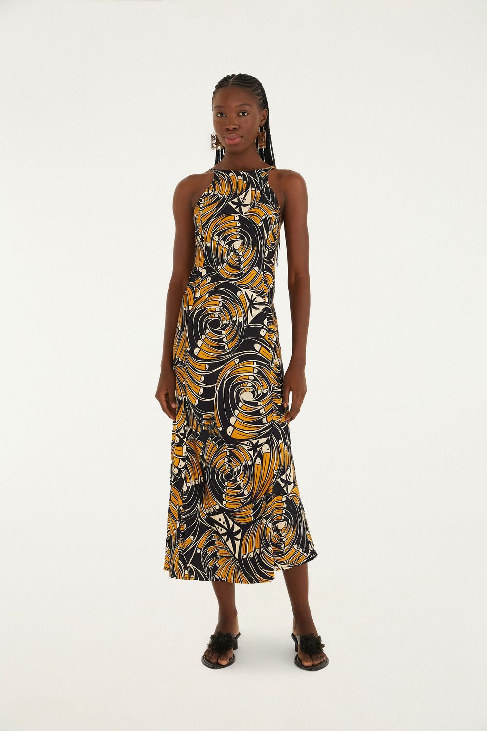 vestido cropped estampado leque de tucanos. possui alças finas que destacam os ombros e fechamento ajustável nas costas, proporcionando conforto e ajuste perfeito. a modelagem reta e fluida garante liberdade de movimento, ideal para eventos diurnos e encontros casuais. tecido leve, perfeito para qualquer ocasião. FARM RIO original - verão 26.-