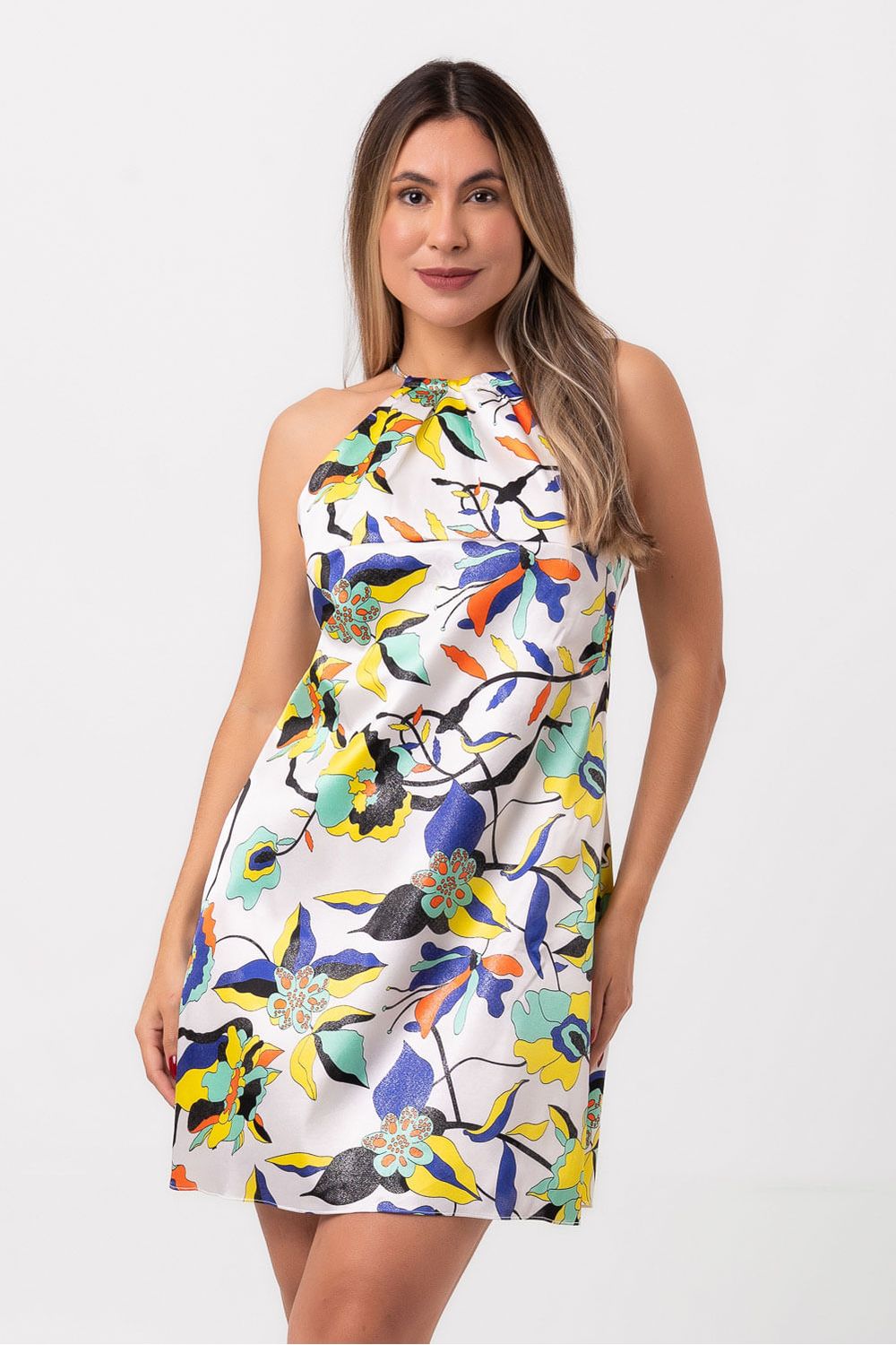 Vestido curto alças cruzadas sensuale amarelo labrava