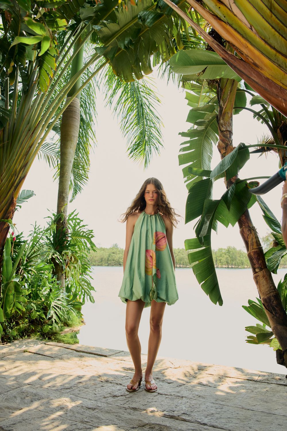 vestido curto balonê estampado anturio. com modelagem balonê, este vestido apresenta um design fluido e contemporâneo. as alças para amarração e o caimento leve elevam o charme em qualquer ocasião casual, desde um passeio à beira-mar até um almoço ao ar livre. FARM RIO original - verão 26.-