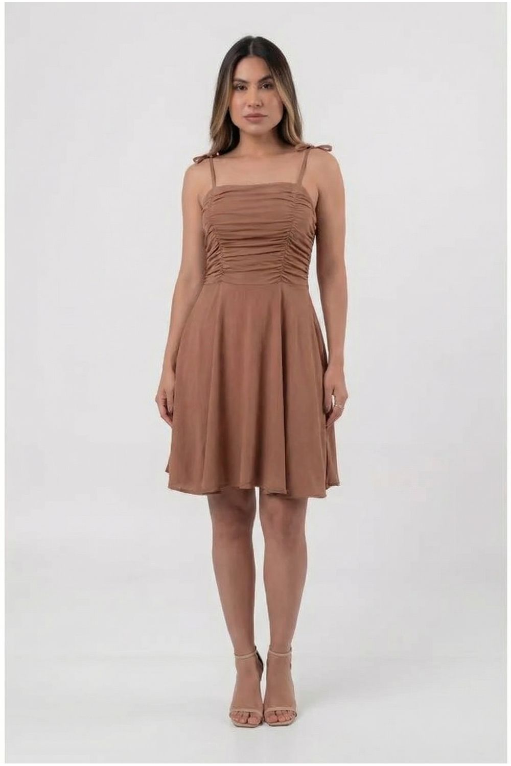 Vestido curto busto drapeado alça de amarrar