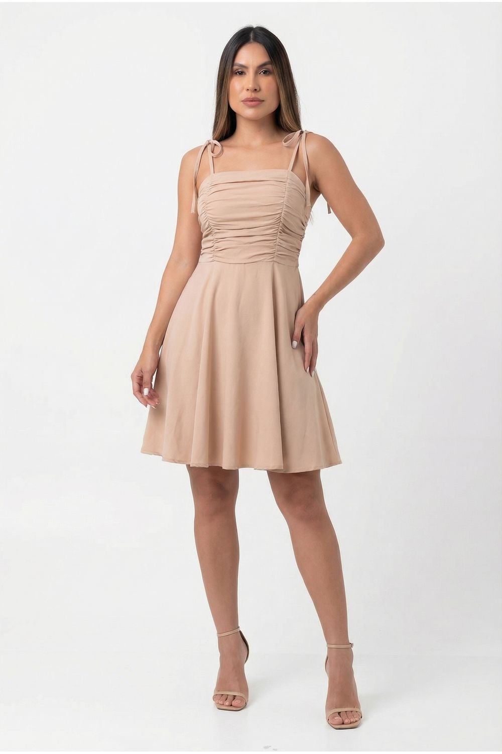 Vestido curto busto drapeado alça de amarrar