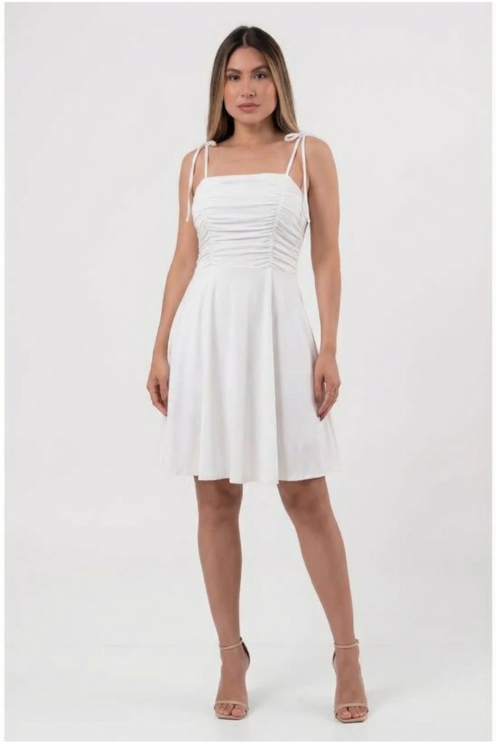Vestido curto busto drapeado alça de amarrar