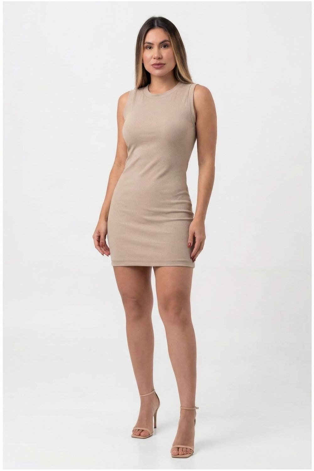 Vestido Curto em Ribana Regata Railane Ref. 706 - Único - Bege escuro