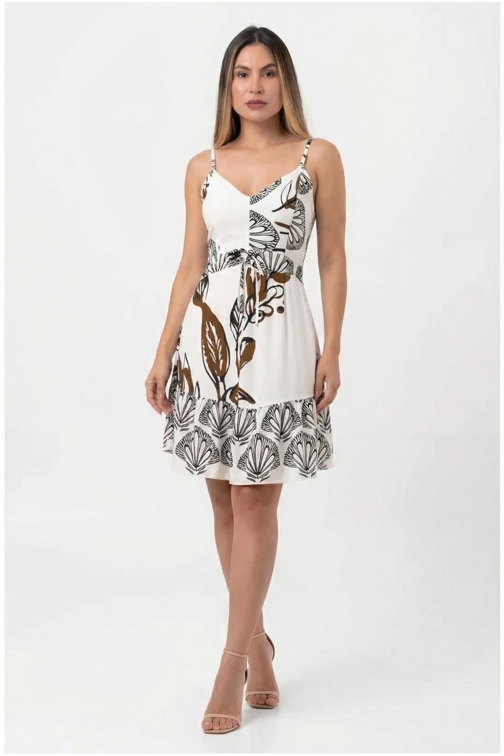 nome: vestido curto estampa folha.