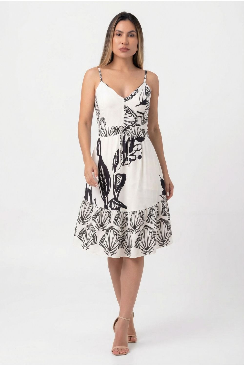 nome: vestido curto estampa folha.