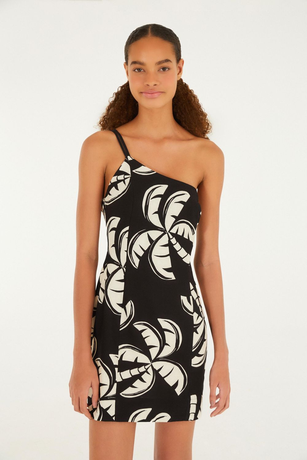vestido curto estampado coqueirada. a modelagem é moderna, com um corte assimétrico de alça única, destacando um ombro à mostra. confeccionado em tecido leve e confortável, é perfeito para um look casual e cheio de estilo. ideal para um passeio à tarde ou um evento descontraído. uma peça que traz personalidade ao guarda-roupa. FARM RIO original - alto inverno 25.-