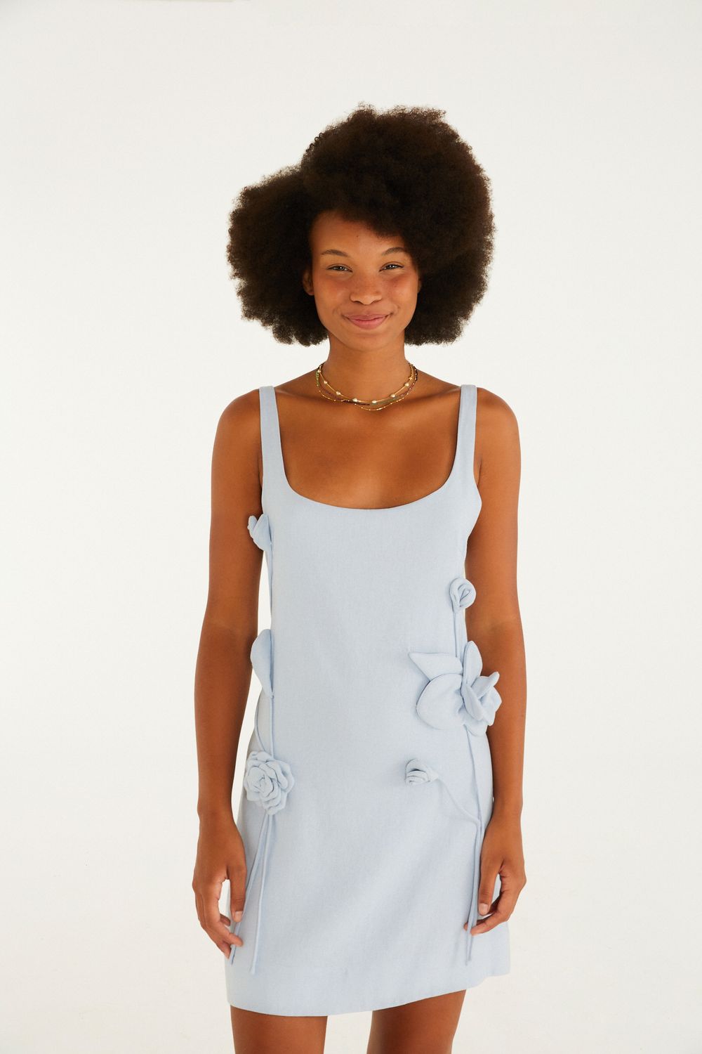 vestido curto flor bordada. com modelagem reta e decote arredondado, este vestido encanta com detalhes florais delicadamente aplicados. alças largas proporcionam conforto, enquanto o tecido leve e o corte solto garantem movimento. ideal para eventos casuais e almoços ao ar livre. FARM RIO original - alto verão 26.-