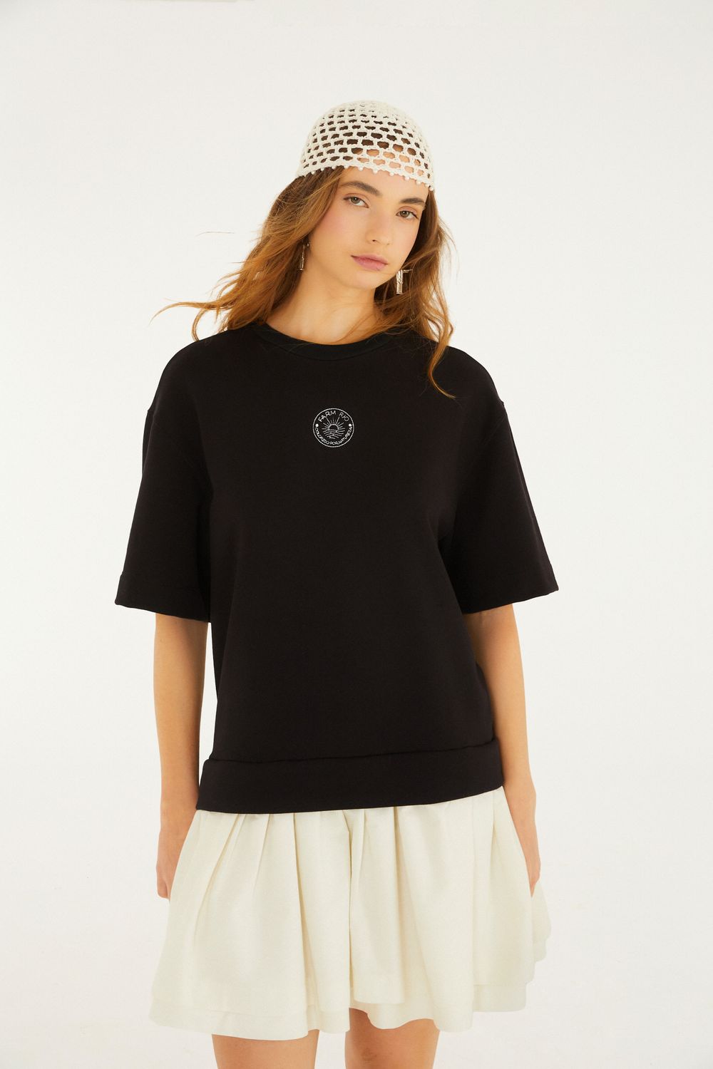 vestido curto moletom bordado. confeccionado em moletom macio, esbanja conforto sem perder o charme. o bordado sutil no centro eleva o design, enquanto as mangas curtas e o corte solto garantem um toque de leveza. perfeito para dias mais frescos, transita facilmente do casual ao sofisticado. funciona bem com tênis ou botas, ideal para encontros ou passeios no parque. FARM Rio, coleção Carioca - inverno 26.-