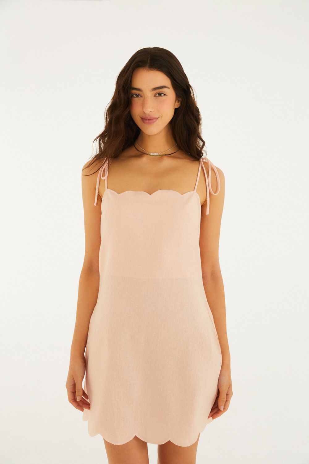 vestido curto nuvem. com alças finas e delicadas, o vestido destaca seu decote em formato de coração, oferecendo um toque romântico. a barra ondulada traz originalidade ao design, que é perfeito para ocasiões casuais de verão, como passeios ao ar livre ou encontros relaxantes. FARM RIO original - alto verão 26.-