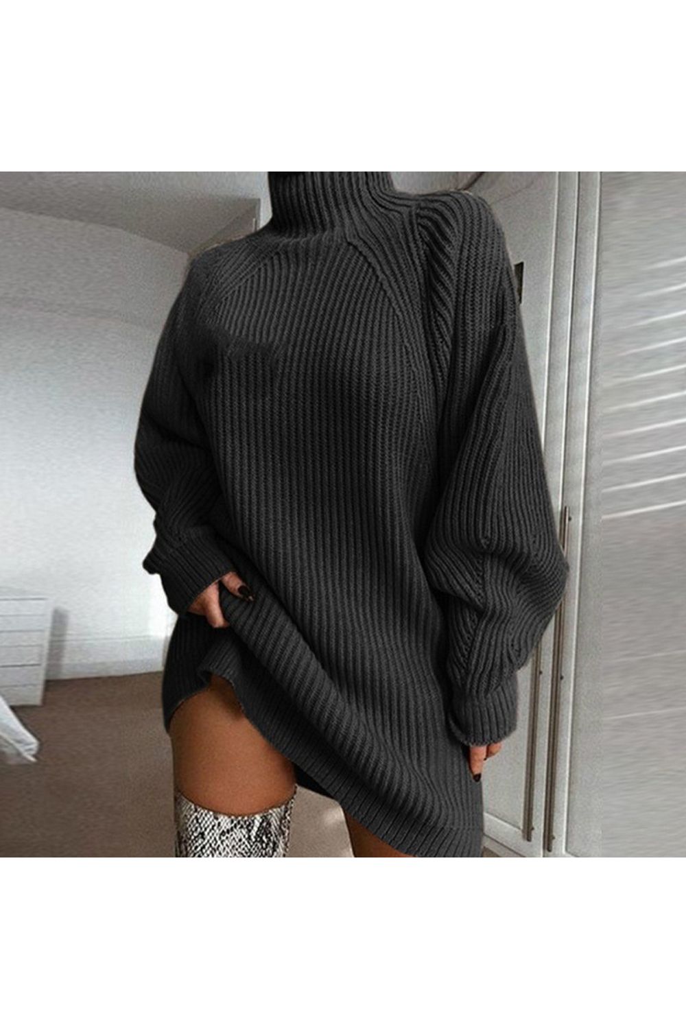 Vestido curto oversized cinza escuro gola alta, manga bufante