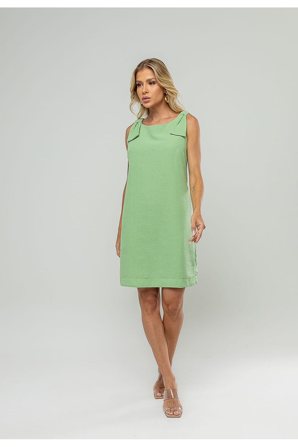 Vestido Curto Regata Com Laço Nos Ombros Verde Salvatore