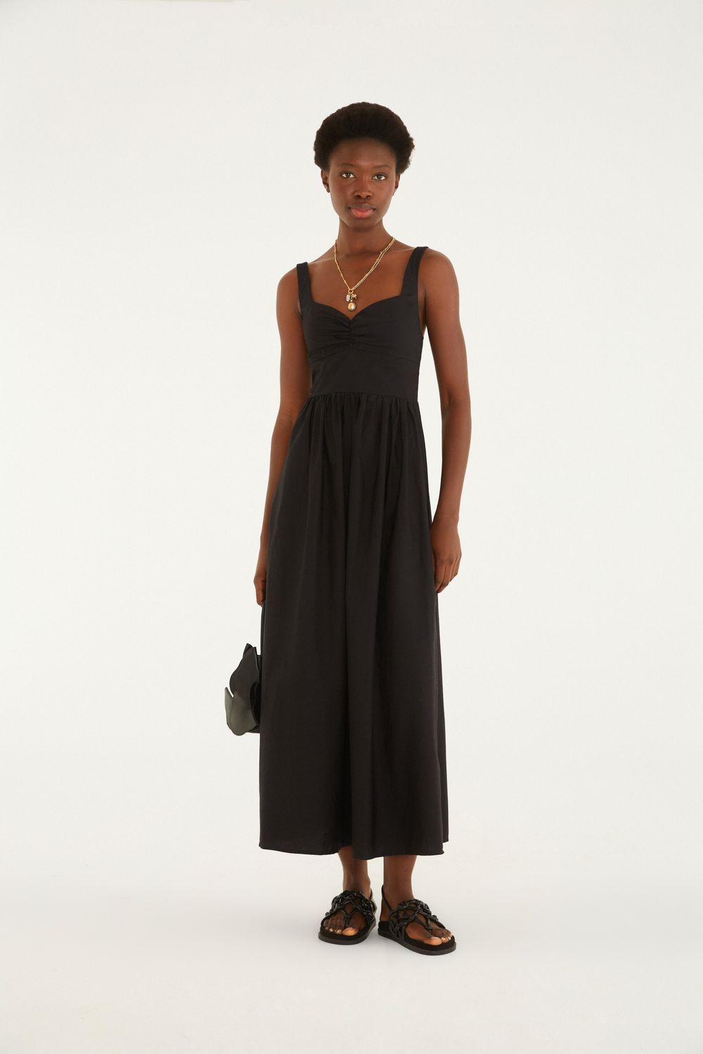 vestido decote franzido. apresenta alças largas e decote ajustável, conferindo um toque especial à peça. o design fluido e o drapeado sutil criam um visual que se adapta do casual ao especial, perfeito para encontros ao ar livre ou jantares charmosos. uma escolha versátil que traz um ar de leveza e originalidade para o seu guarda-roupa. FARM Rio, coleção Carioca - inverno 26.-