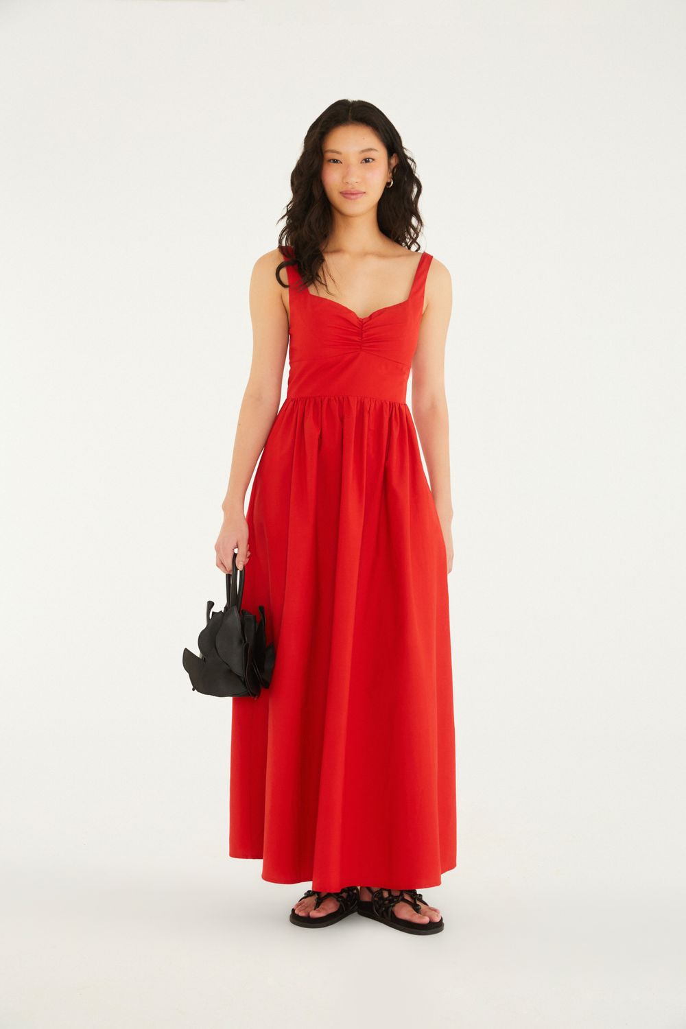 vestido decote franzido. apresenta alças largas e decote ajustável, conferindo um toque especial à peça. o design fluido e o drapeado sutil criam um visual que se adapta do casual ao especial, perfeito para encontros ao ar livre ou jantares charmosos. uma escolha versátil que traz um ar de leveza e originalidade para o seu guarda-roupa. FARM Rio, coleção Carioca - inverno 26.-