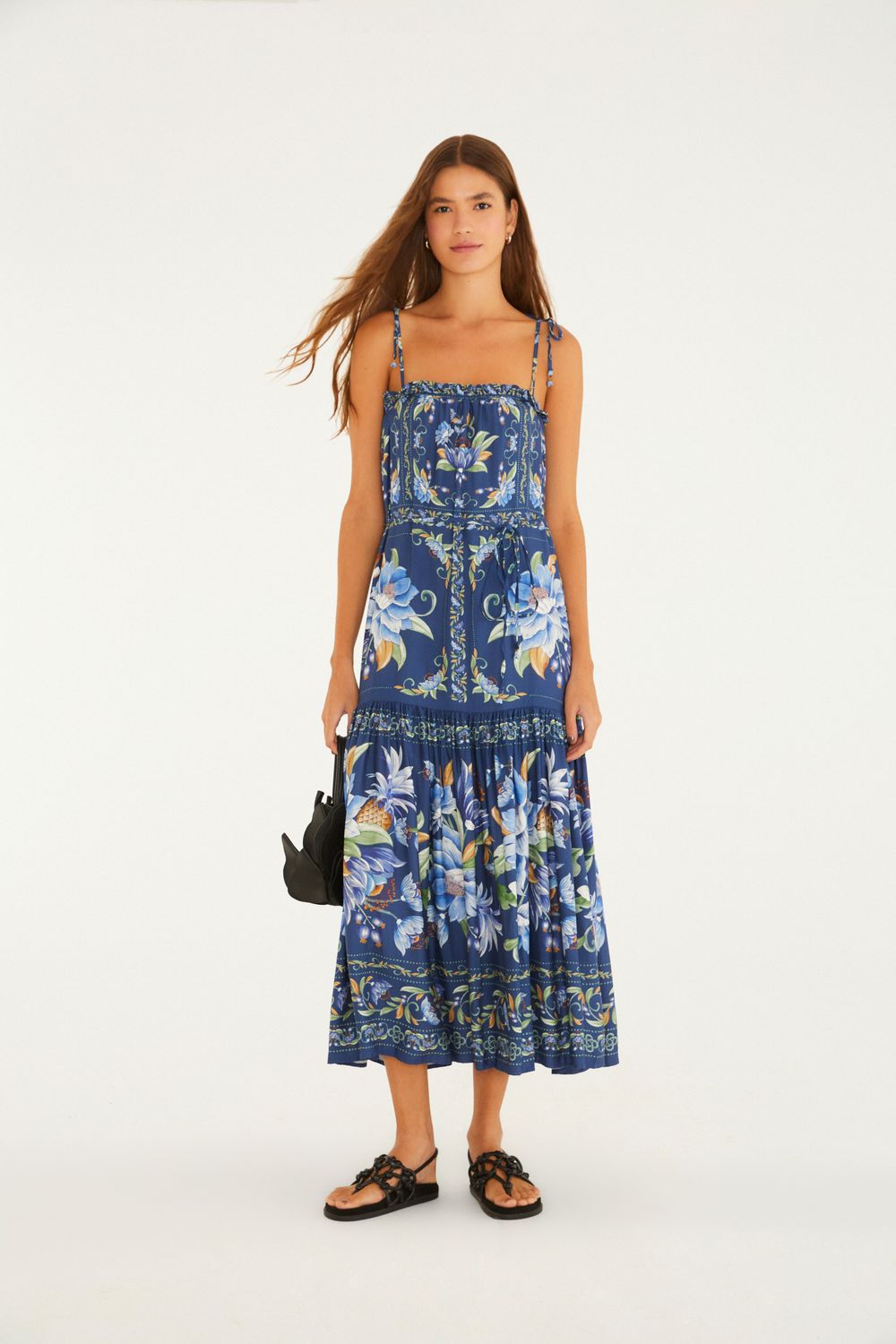 vestido floral Ana é a expressão perfeita do estilo casual da farm. com alças finas ajustáveis e decote quadrado, o modelo valoriza a leveza e o conforto. detalhes delicados elevam a peça para ocasiões especiais ou momentos descontraídos. uma escolha ideal para um dia ensolarado ou uma noite refrescante. FARM Rio, coleção Carioca - inverno 26.-