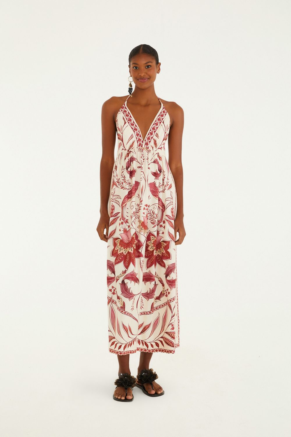 vestido estampado nina. traz um decote profundo em v com alças finas ajustáveis, proporcionando conforto e estilo. a modelagem leve e fluida transforma-o em uma peça ideal tanto para um passeio à beira-mar quanto para eventos casuais na cidade. fabricado em tecido leve, é a escolha perfeita para dias ensolarados. FARM RIO original - verão 26.-