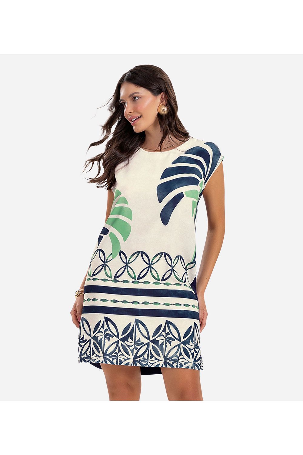 O Vestido Feminino Curto Estampado é a escolha ideal para quem busca conforto e estilo. Confeccionado em viscotorcion, tecido leve e macio, oferece um caimento solto e confortável. Seu design moderno conta com modelagem ampla, garantindo liberdade de movimento. O decote redondo traz praticidade, enquanto a estampa frontal sublimada adiciona um toque de personalidade e charme. Versátil e estiloso, é perfeito para diversas ocasiões, combinando com sandálias, tênis ou botas.-