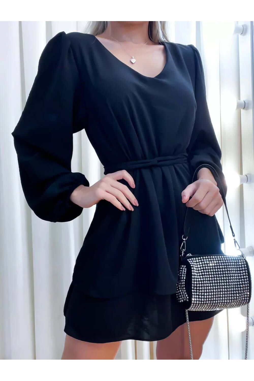 Vestido Feminino Curto Manga Longa Suelen Ref. 820 - U - Preto