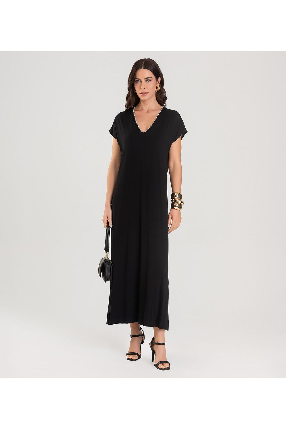 Vestido Feminino Decote V Super Midi Dianna Preto