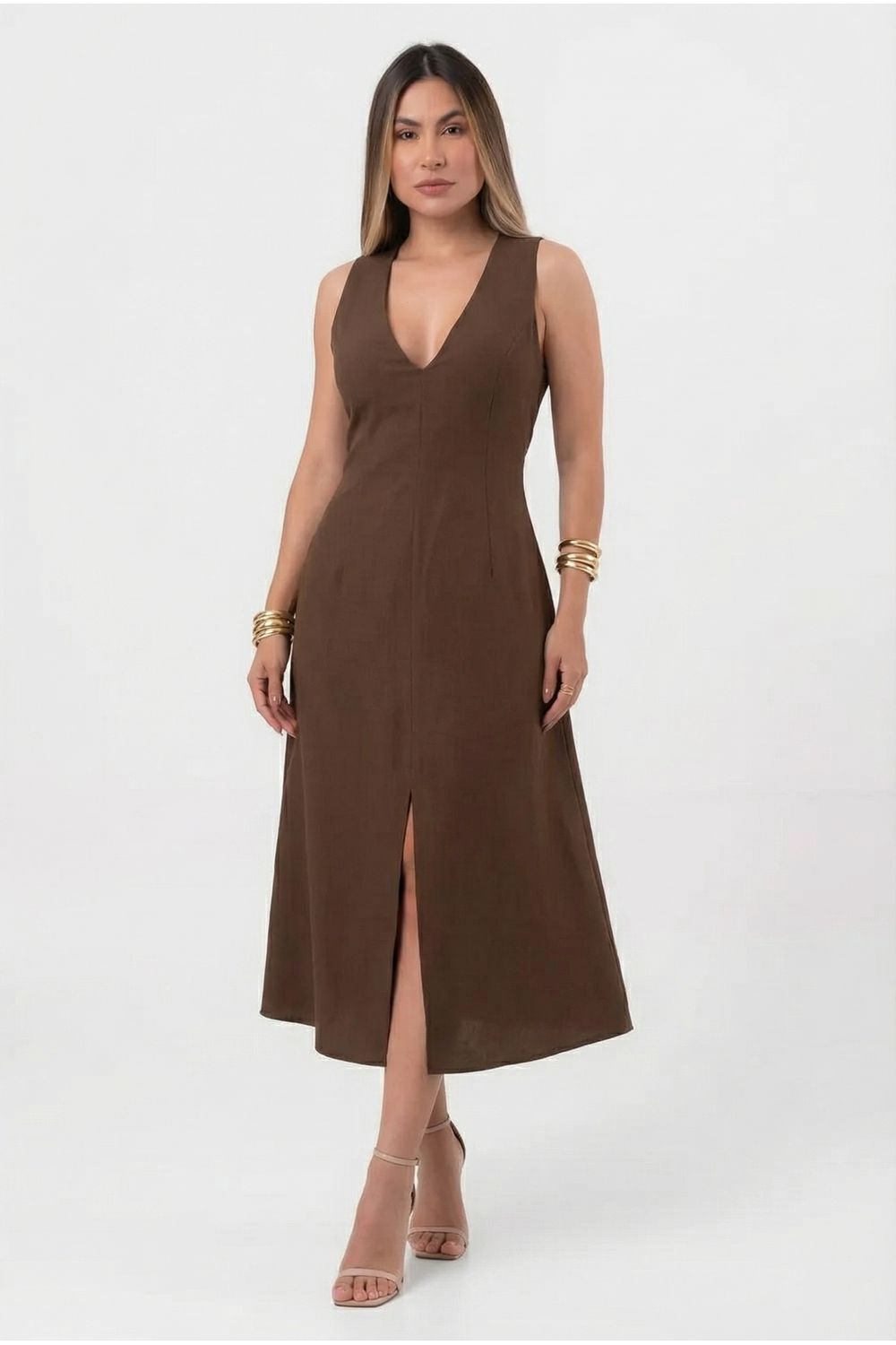 Vestido feminino liso midi