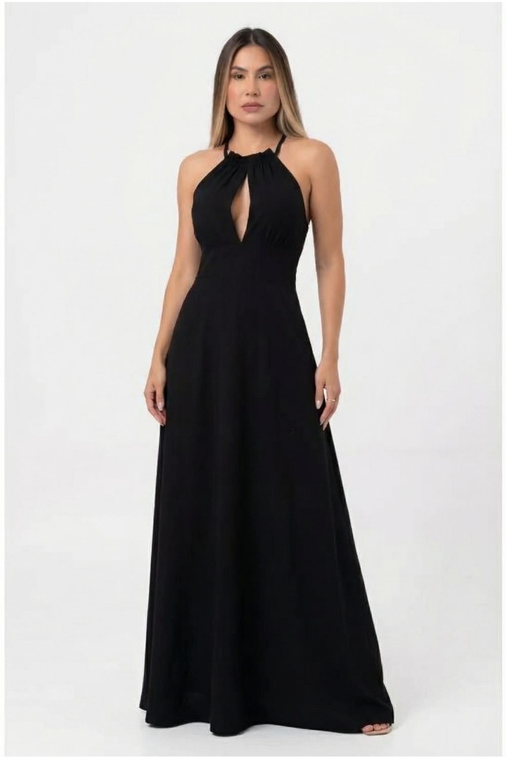 Vestido feminino longo frente aberta