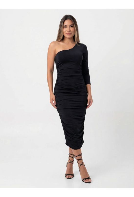 Vestido Feminino Longo Plissado Nula Manga Zaria ref.1070 - Preto - Único