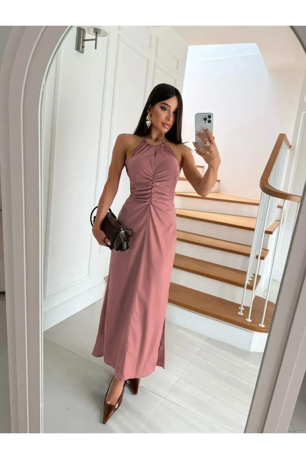 nome: vestido feminino longo plissado.