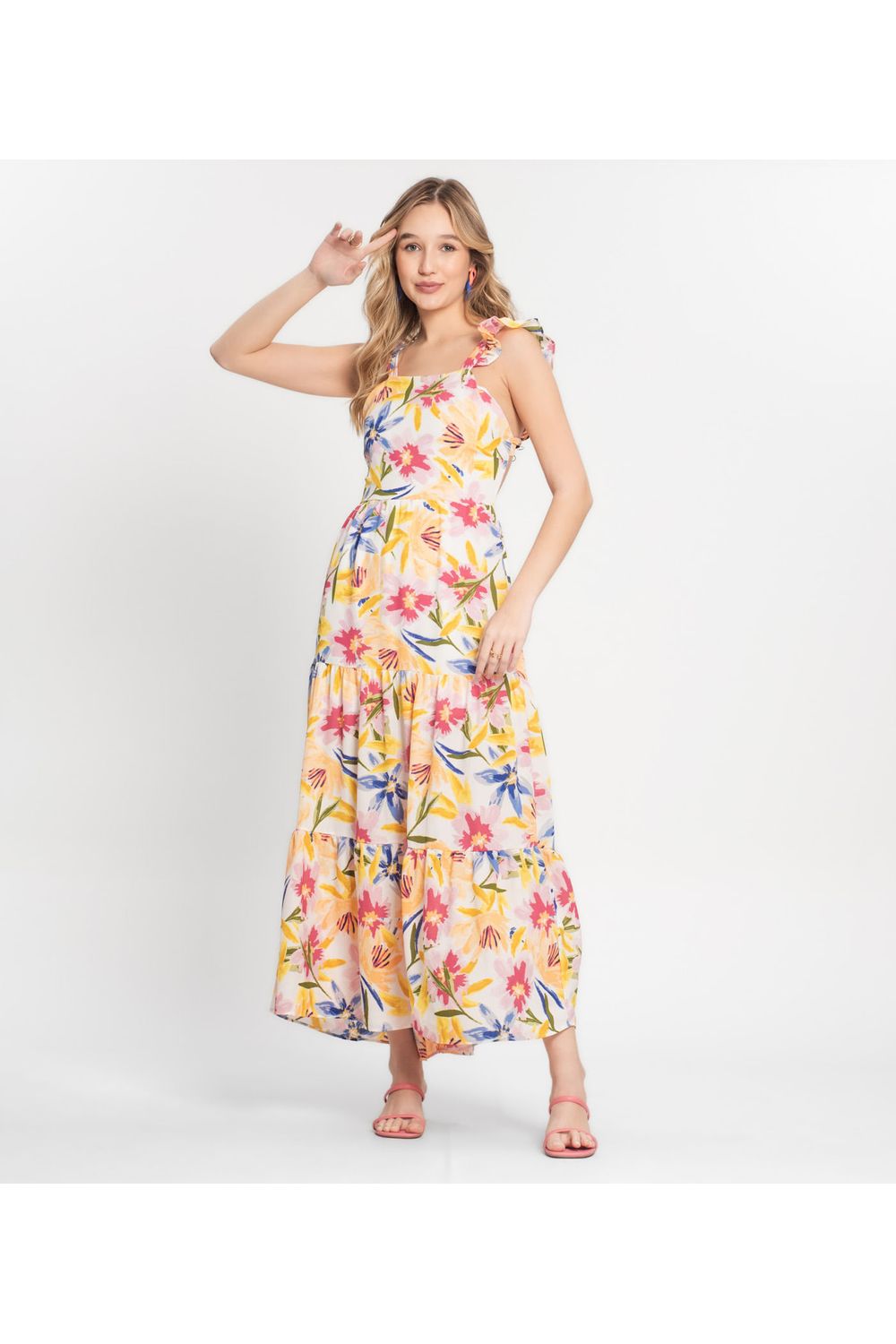 Vestido Feminino Midi Estampado Select, é uma peça elegante e confortável, ideal para dias ensolarados. Possui alcinhas, amarração nas costas e elástico na cintura para um ajuste perfeito. Feito com tecido leve e de alta qualidade, é ideal para diversas ocasiões, proporcionando um visual fresco e sofisticado. Composição - 100%Poliester Forro - 100%Poliester-