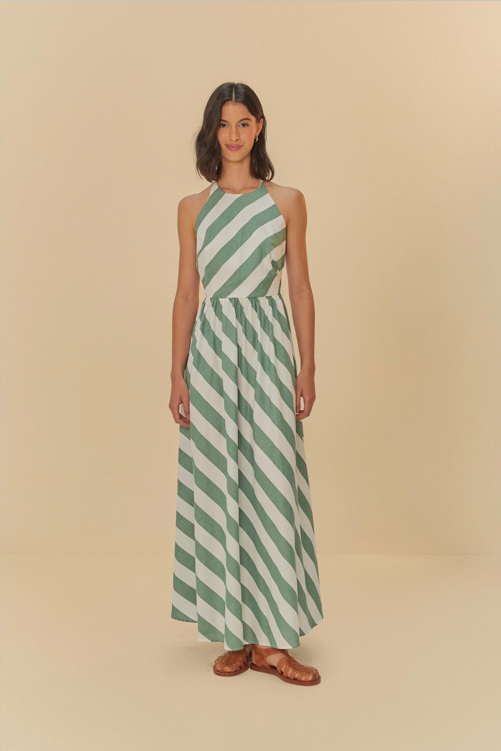vestido frente única estampado mistura de listra. com alças finas e decote halter, esse vestido é uma peça singular e casual para diversas ocasiões. a modelagem fluida proporciona conforto e movimento, enquanto a estampa inovadora traz um toque de originalidade. ideal para passeios ao ar livre ou eventos casuais e descontraídos. FARM RIO original - inverno 25.-