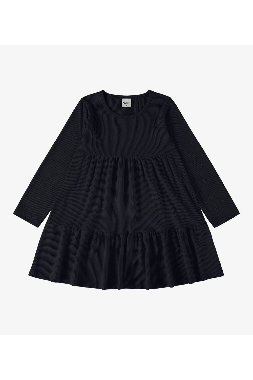 Vestido Infantil Manga Longa Canelado Rovi Kids Preto